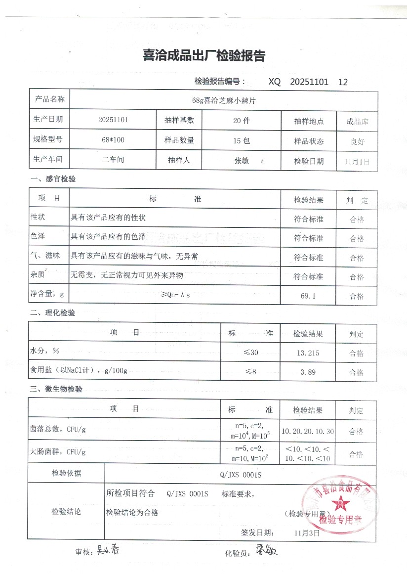 68g喜洽芝麻小辣片