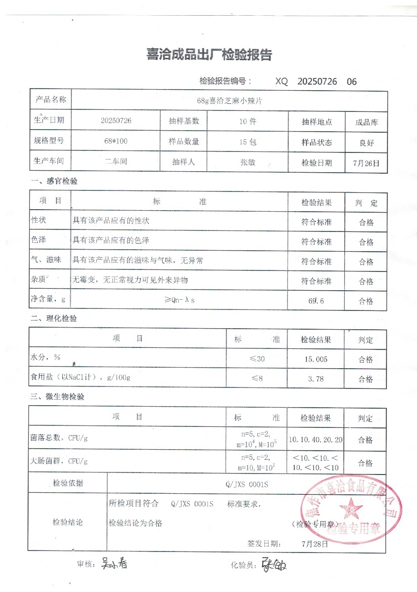 68g喜洽芝麻小辣片