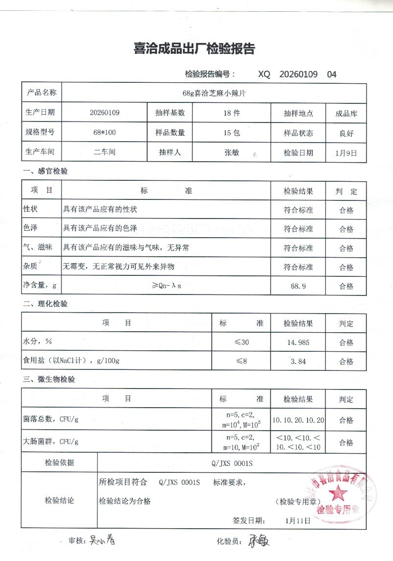 68g喜洽芝麻小辣片