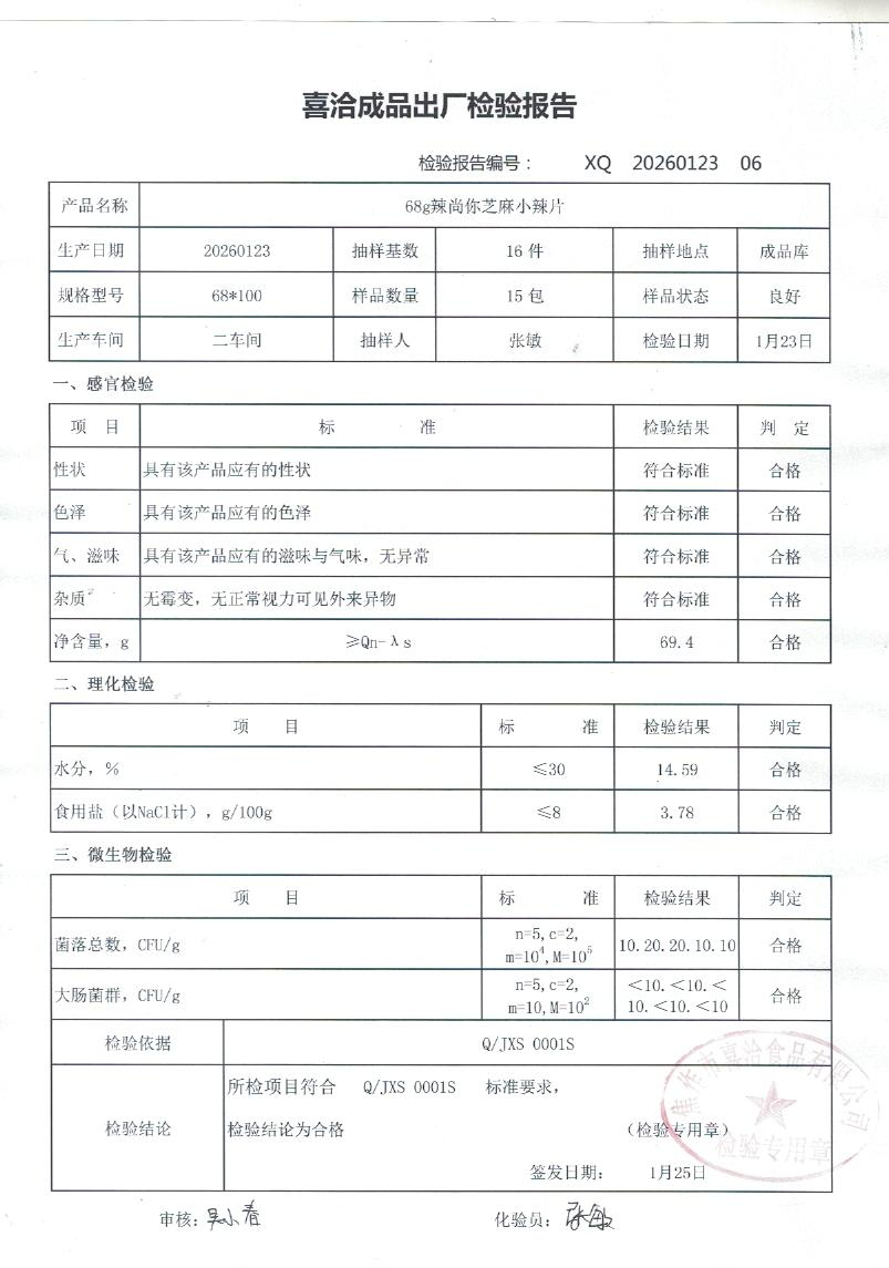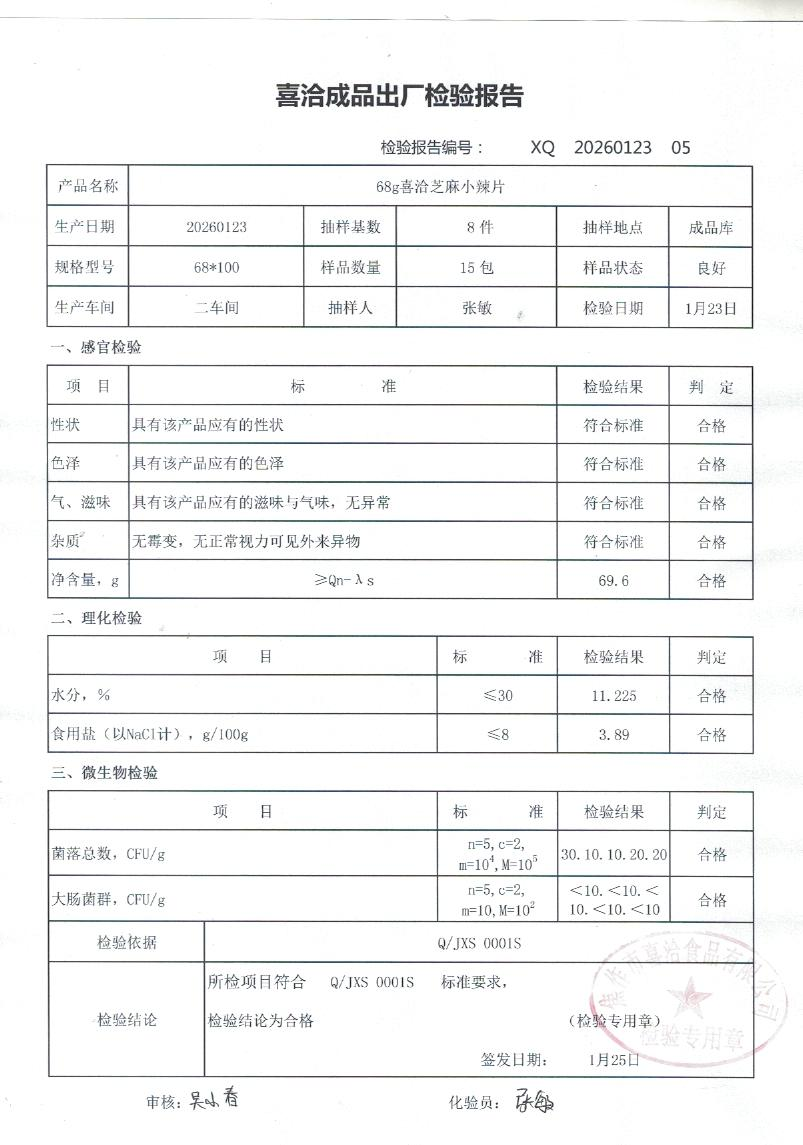 68g喜洽芝麻小辣片