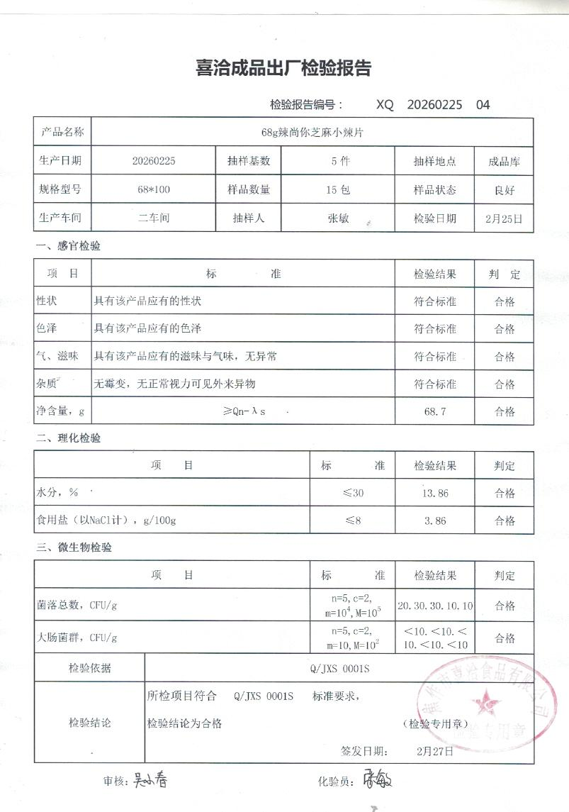 68g喜洽芝麻小辣片