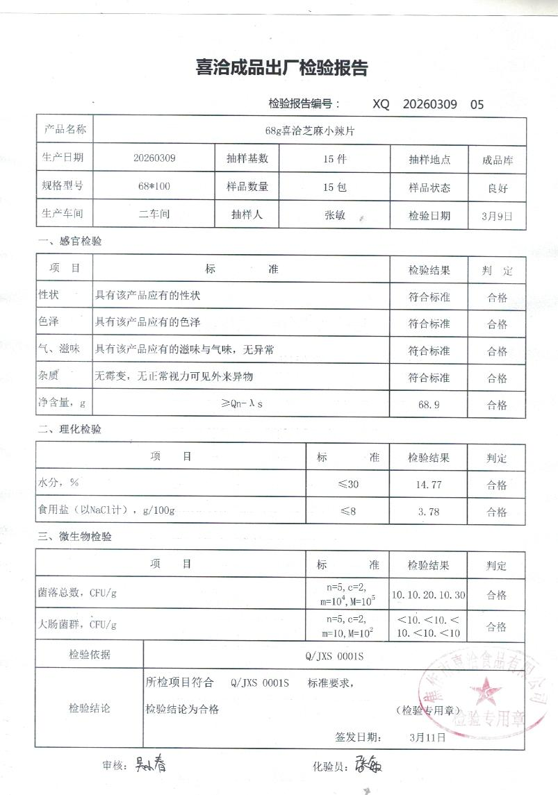 68g喜洽芝麻小辣片